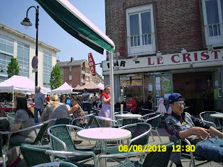 After breakfast of croissants (I had three), rolls, coffee, butter, jam, orange juice we assembled in the sunshine. Some of the gang (JA calls our 'gang' The Thick and the Fast) made plans to go and visit Vimy Ridge and the V1 Rocket facility at La Coupole. Others opted for steam trains. Our sub-gang went to the seaside for lunch followed by ice creams.